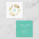 Golden Floral Wreath & Mint Green Monogram Square Business Card