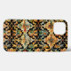 The colour palette is vibrant and warm, with shades of golden yellow, fiery orange, muted greens, soft blues, and touches of red, all set against a deep black background. This contrast enhances the brightness and detail of the floral and botanical elements, giving the design a striking and luxurious feel.