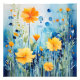Bring the joy of summer indoors with this vibrant painting of golden flowers bursting against a bright blue background. This delightful artwork is sure to add a touch of sunshine to any room and brighten anyone's day
