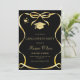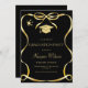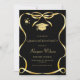 Beautiful golden frame with a bow at the top. There are stars and a golden graduation cap inside the frame. The backdrop is black.
