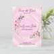 Elegant and cute golden geometric frame with pink and red spring flowers and leaves over a sparkly pink background