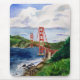 This watercolor captures the majesty of the Golden Gate Bridge. The point of view is from the Presidio looking towards Marin County on a beautiful California day. Rendered in watercolor.