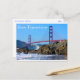 Welcome to San Francisco! This fun travel post card features a photo of the infamous Golden Gate Bridge located in San Francisco. California