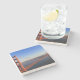 The coasters are gorgeous, a quality feel and heavy weight. They look like a precious archeological find. A rustic stone juxtaposed with a modern floral black and white print. I like the way the print goes slightly imperfect on the cut stone edges giving them a kind-of natural beauty.