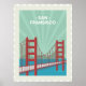 Illustration of Golden Gate with Rays And Mountain Background For San Francisco Stamp, Label Or Sticker Design.