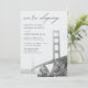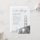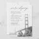 Capture the beauty of San Francisco and invite your guests in style with this black and white Golden Gate Bridge elopement invitation. The front showcases a bridge photo, setting the perfect tone for your wedding day. Customise the text to make it your own and enter the Zazzle design tool for further customisation. Compare paper types to select your favourite and pair with coordinating details, rehearsal, and RSVP enclosure cards.