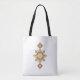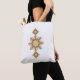A luxurious tote bag featuring an intricate golden geometric pattern inspired by cultural symmetry and modern artistry — a perfect blend of elegance and tradition.