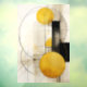 This contemporary abstract artwork is a celebration of geometric shapes, with a striking yellow circle dominating the composition. The minimalist aesthetic and watercolor elements create a piece that is both visually appealing and thought-provoking.