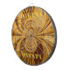 This artwork showcases a dynamic kaleidoscope pattern primarily composed of shades of gold and brown. The colours and shapes repeat and mirror themselves around a central point, creating a mesmerising visual effect. Prominently displayed in the centre is the phrase "HAKUNA MATATA," likely in a contrasting colour such as white or black.