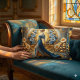 Step into a world of timeless elegance with this stunning Art Nouveau-inspired design, featuring a graceful goddess draped in flowing sapphire and gold fabric. Surrounded by intricate golden florals and soft blue blossoms, she stands in a radiant halo that evokes celestial symbolism and classical beauty. The balanced symmetry, ornate floral motifs, and luxurious palette of gold, blue, and ivory blend seamlessly with the flowing curves and decorative geometry typical of the Art Nouveau era. Ideal for lovers of mythology, fantasy aesthetics, and vintage elegance, this piece brings a regal and ethereal presence to any space. Whether used as a centerpiece or integrated into a larger decorative collection, it radiates a refined, feminine energy that feels both nostalgic and timeless. AI generated artwork.