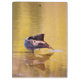 A photograph of a Canada Goose grooming itself in a shallow section of a pond. The goose's perfect balance is reflected back onto the water, as it's feather tip gently graces the water. The surrounding landscape is reflecting it's Springtime colours on the surface of the water. Ripples of yellow, green and brown hues scatter across the pond's surface.