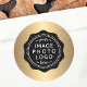Business logo stickers with a wavy printed image golden colour gradient border (not real foil). Move and resize the logo with the design tool.