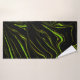 Image with traces in green colour changing to dark golden - or brownish - colour in black background. Shapes of wavy strokes resemble grass or coconut leaves.