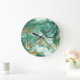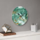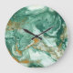 Golden-green acrylic: marble texture art. large clock
