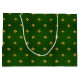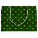 This Irish inspired pattern features metallic gold four leaf clovers on a dark green background.