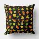 Beautiful, elegant modern golden, green, orange autumn leaves on black Throw Pillow.