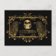 This design features a metallic gold skull above the text "Halloween" flanked by two ravens in an ornate frame.