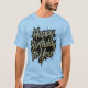 This tee shirt design features a golden Happy Birthday message in bold hand lettering, perfect for celebrations and gifting.