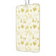 An elegant seamless pattern in radiant gold on a white background: Scattered everywhere are party hats, balloons, ribboned gifts, sparkling champagne glasses, fireworks bursts, and streamers – repeatedly framed by the handwritten script „Happy New Year“. Festive, glamorous, and brimming with anticipation for the New Year.