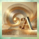 This abstract artwork shows curved, golden rainbow shapes that extend harmoniously from a central point. At the bottom there is a concise, stylized golden "A" that rounds off the composition. The soft neutral background color enhances the luxurious gloss of the golden elements, while the soft lighting gives the image a radiant elegance. The modern decor symbolizes refinement and timeless beauty.