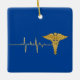This ornament features golden heart rate line with a golden medical caduceus at the end. The back of the ornament can be personalised with a NAME and the YEAR that you want. This makes a great gift for anyone in the family who is a doctor to be represented on the Christmas tree, or just for your favourite doctor as a gift from you. Due to the design style, this can only be purchased on SQUARE ornaments. Designed by Sheila Cicchi, Brownielocks.com. All Rights Reserved.