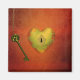 Lovely and romantic illustration featuring a golden heart and key on a structured red background. Gold Script love quote: "The key to my heart".