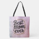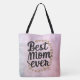 Make a fashionable statement with our stylish tote bags, featuring the words best mum ever in trendy script typography and golden heart accents. A modern and elegant gift she'll love this Mother's Day.