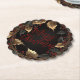Golden Holly Wreath – Elegant Christmas Paper Coaster