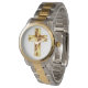 Very good quality watch that looks good whether dressing up or down. The band is sturdy. The watch is rather large so might not work for smaller folks. Recommended as a good gift. Printing is just a touch light but adds a nice touch of personalization.