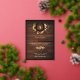 Sunflower and horse themed gold foil wedding invitation with a printed wood grain background. Horseshoe monogram wedding invitation with gold foil details, sunflowers, and flowers in blush pink and burgundy with greenery and berry twigs. Personalise with a photo on the back. Horseshoe wedding invitation with gold foil borders, sunflowers, and a photo on the back. Sunflower wedding invitation with a horseshoe monogram in gold and burgundy. Rustic wood and sunflower wedding invitation with gold foil lettering and a golden horseshoe with little stars.