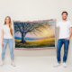 This highly detailed digital painting captures the timeless beauty of an ancient birch tree standing gracefully in a sunlit meadow. With its textured white bark, blossoming branches, and golden leaves reaching toward a warm, radiant sun, the scene evokes peace, depth, and quiet reflection. Soft golden hour lighting bathes the lush grass, wildflowers, and distant misty hills, creating an idyllic natural atmosphere. Perfect for wall art, posters, and home décor, this artwork brings warmth, tranquility, and a sense of harmony with nature into any space.