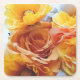 This coaster set features a vibrant, hand-arranged bouquet of sun-kissed blooms.