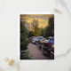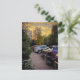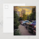 This postcard doesn’t just send a message—it carries a scene. Captured and designed by Sotnichenko, this golden hour invitation postcard blends city rhythm with a quiet emotional charge. Late sunlight filters through trees, brushing soft shadows across a row of parked cars, apartment silhouettes, and wild summer blooms. It’s a moment suspended in amber, waiting to be passed on.