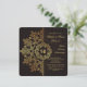 A luxurious invitation for celebrating your most formal affair. The dark background has a brown abstract pattern and is overlaid with a repeat of the pattern in gold. The featured wreath can hold monograms or a year. The perfect choice to impress. Want to save money? Print with the basic square corners.