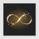 Gold, jewellery infinity symbol with gold stars on a black background. Design with gold star.