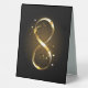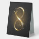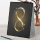 Gold, jewellery infinity symbol with gold stars on a black background. Design with gold star.