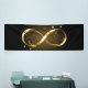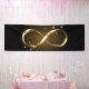 Gold, jewellery infinity symbol with gold stars on a black background. Design with gold star.
