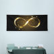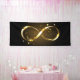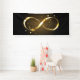 Gold, jewellery infinity symbol with gold stars on a black background. Design with gold star.