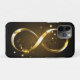 Gold, jewellery infinity symbol with gold stars on a black background. Design with gold star.