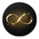 Gold, jewellery infinity symbol with gold stars on a black background. Design with gold star.