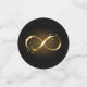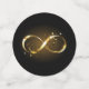 Gold, jewellery infinity symbol with gold stars on a black background. Design with gold star.