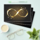 Gold, jewellery infinity symbol with gold stars on a black background. Design with gold star.