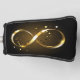 Gold, jewellery infinity symbol with gold stars on a black background. Design with gold star.
