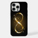 Gold, jewellery infinity symbol with gold stars on a black background. Design with gold star.