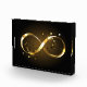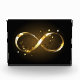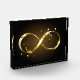 Gold, jewellery infinity symbol with gold stars on a black background. Design with gold star.