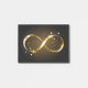 Gold, jewellery infinity symbol with gold stars on a black background. Design with gold star.