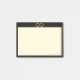 Post-it notes with elegant golden infinity symbol on black frame and light yellow background. Text "Have a Good Day" can be personalised.