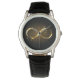 Gold, jewellery infinity symbol with gold stars on a black background. Design with gold star.