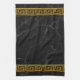 16” x 24” black kitchen towel with an image of black marble and black and metallic gold Greek key borders. See matching cloth napkin, paper cocktail napkin, cloth placemat, paper placemat and coasters. See the entire Toga Kitchen Towel collection in the FOOD/BEV | Linens section.