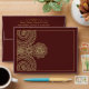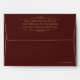 This cordovan coloured envelope with the golden lace filigree on front and customisable return address on back, is large enough to hold your wedding & reception invitations, RSVP card & return envelope.